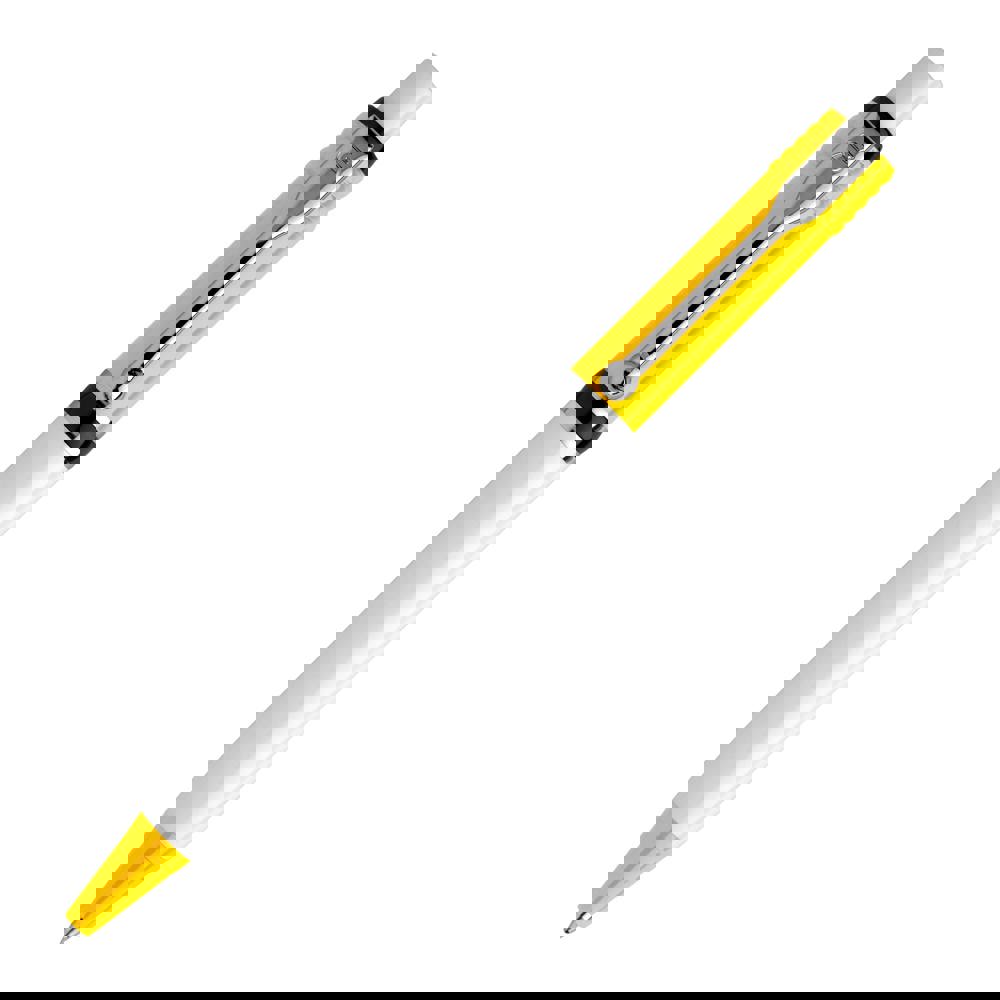 Eines der beliebtesten Modelle von Stilolinea ist der Hardcolour Kugelschreiber Raja-Color Kugelschreiber mit weißem Schaft und farbigen Elementen. Ausgestattet mit einer blau schreibenden Jumbo-Refill-Mine. Der Druckkugelschreiber besteht aus ABS und Metall und wird in Europa hergestellt. Ab einer Abnahmemenge von 5.000 Stück sind eigene Farbkombinationen möglich.