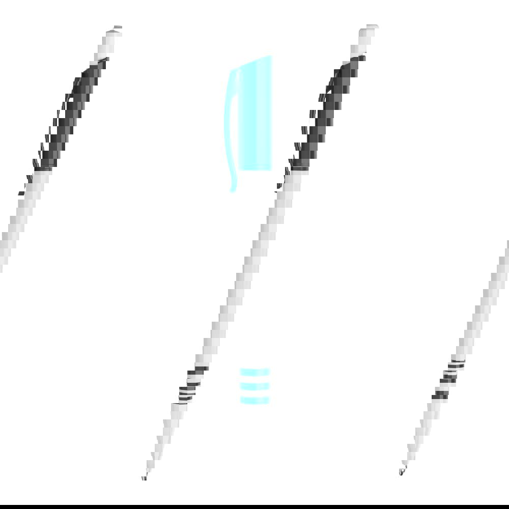 Der Hardcolour Kugelschreiber Tropic hat eine große Druckfläche auf dem Clip und dem Schaft. Eine ansprechende Kombination aus weißem Schaft und weißem Drücker sowie einem farbigen Clip. Der Schaft hat drei farbige Ringe in der gleichen Farbe wie der Clip. Druckkugelschreiber ausgestattet mit einer blau schreibenden Jumbo-Refill-Mine. Der Stift besteht aus ABS-Kunststoff und wird in Europa hergestellt. Ab einer Abnahmemenge von 5.000 Stück sind eigene Farbkombinationen möglich.