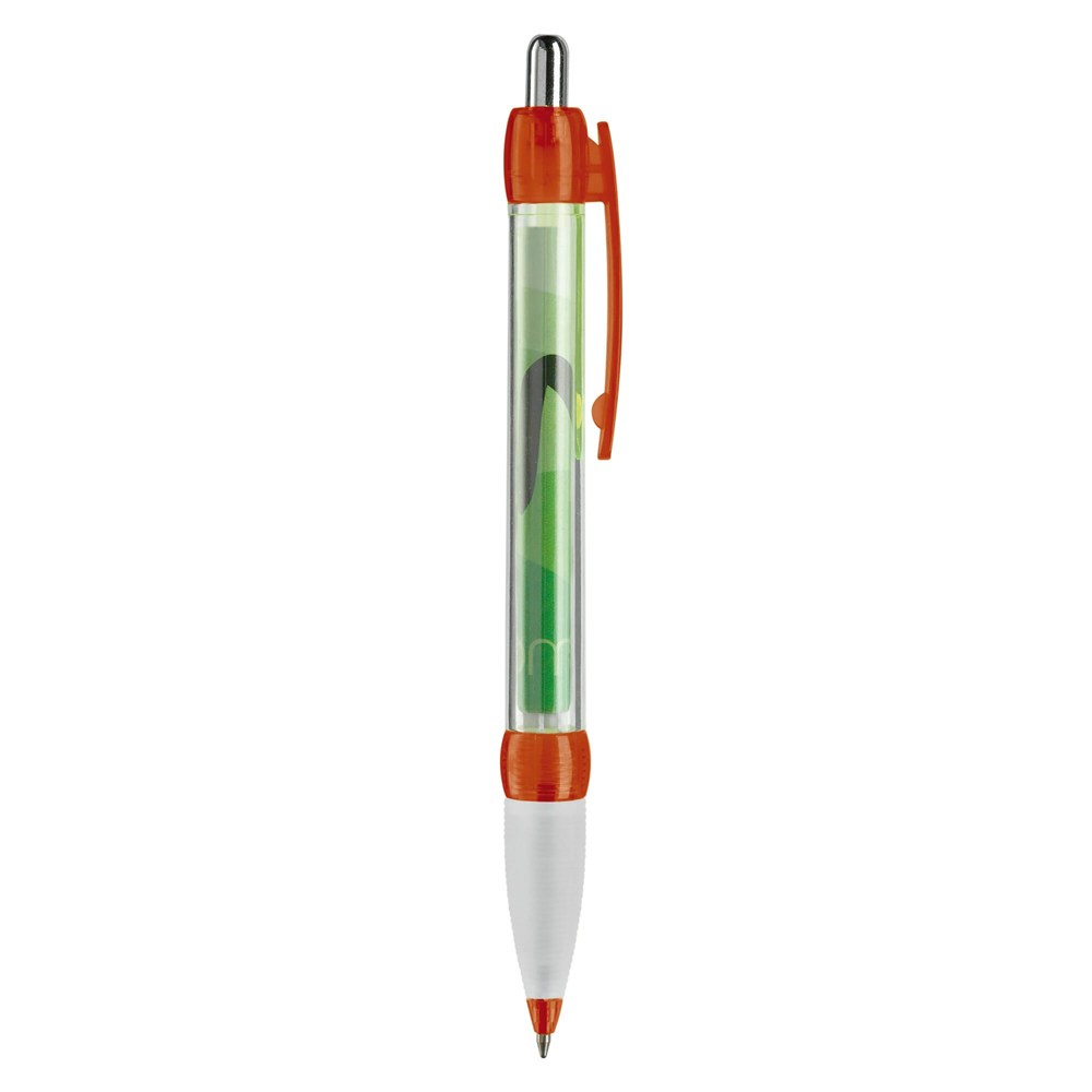 Transparenter Kugelschreiber mit Gummimanschette und integriertem Werbebanner, beidseitig in Full-colour. Ein optimaler und kompletter Werbeträger! Ausgestattet mit blauer X20-Mine. Werbeanbringung zusätzlich auf dem Schaft oder dem Clip möglich. Lieferzeit ca. 6 Wochen.