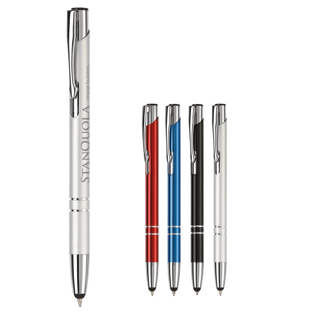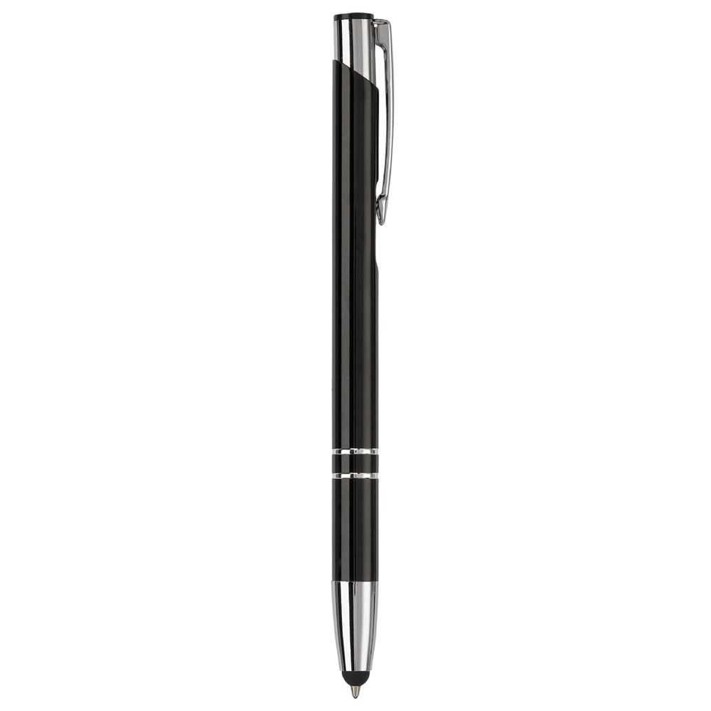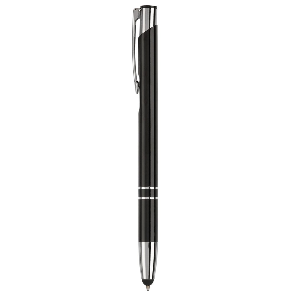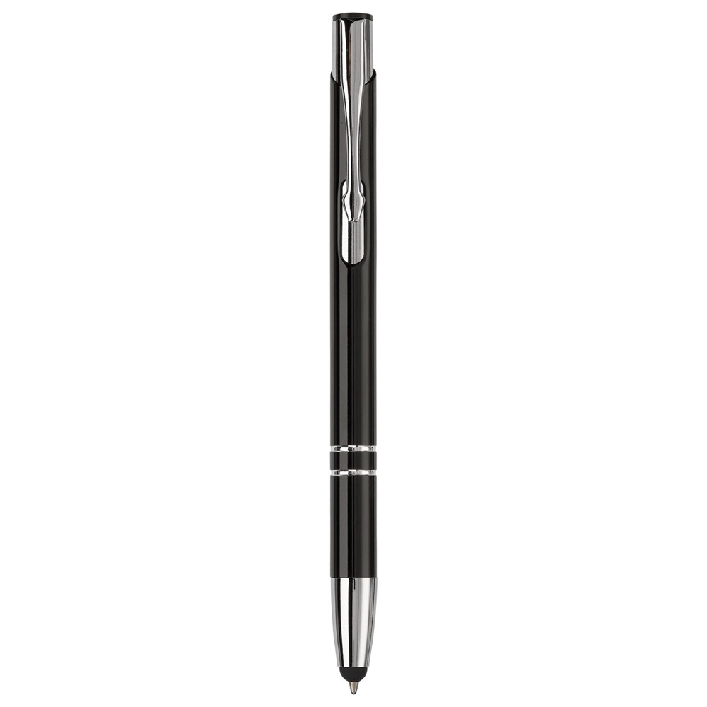 Eleganter Aluminium Kugelschreiber mit Touch Funktion und 2 Ringen am Schaft. Blauschreibend.