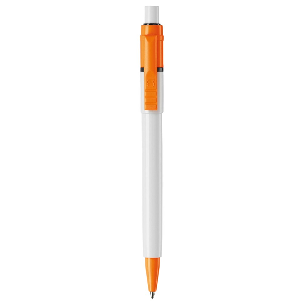 Der Hardcolour Kugelschreiber Baron-Color hat einen weißen Schaft und einen weißen Drücker sowie einen farbigen Clip und eine farbige Spitze. Die blauschreibende Mine ist eine synthetische Jumbo-Mine. Der Hardcolour Kugelschreiber besteht aus ABS und wird in Europa hergestellt. Ab einer Abnahmemenge von 5.000 Stück sind eigene Farbkombinationen möglich.
