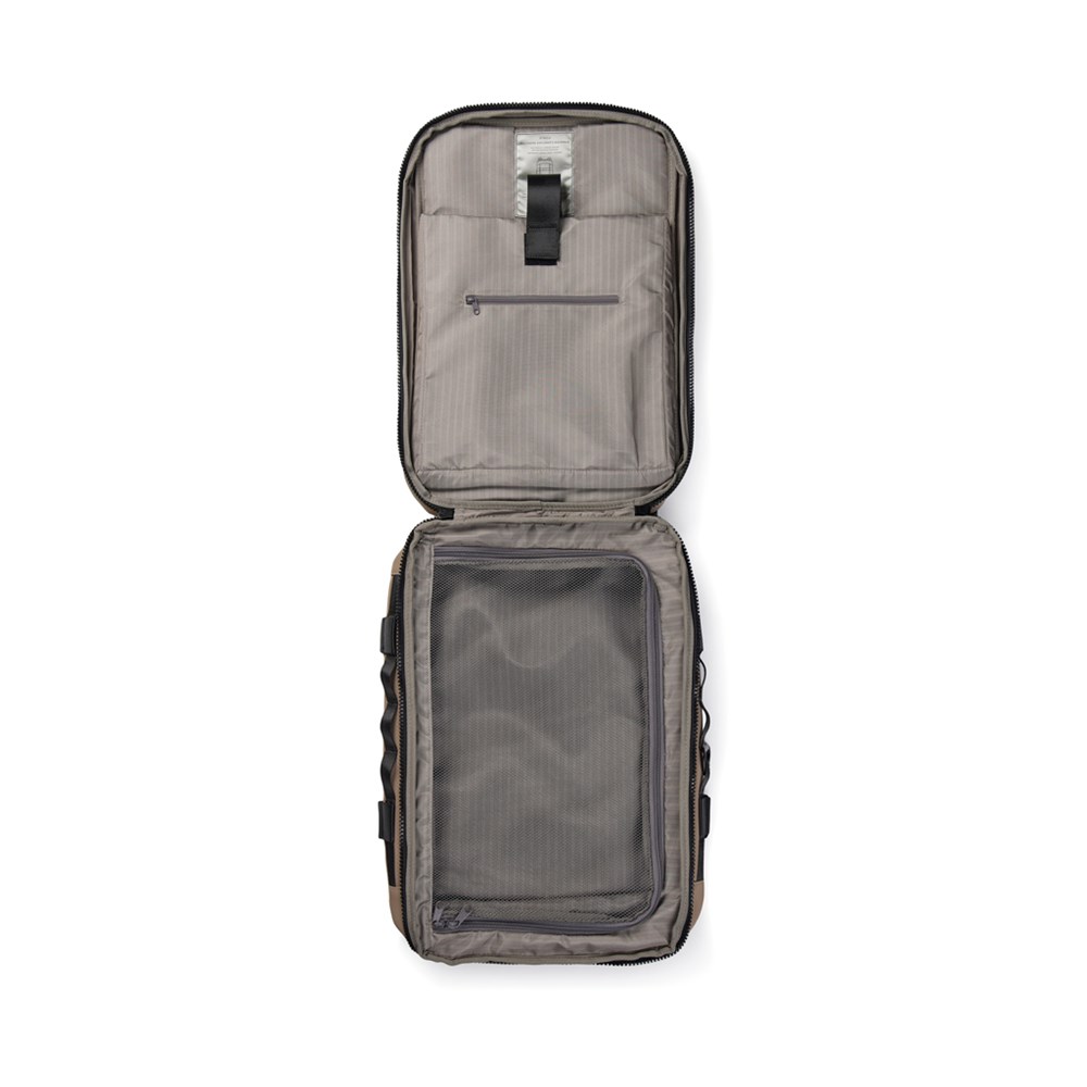The ultimate companion for your adventures. Crafted with partly RCS certified recycled polyester. The exterior features a sleek PU finish, with mesh backing on the shoulder straps and back for maximum comfort. Designed for convenience, the bag can be fully opened for easy access. With multiple smart features, it offers a laptop compartment, two exterior pockets and a roomy mesh section inside to keep your gear organised. A sturdy top handle and a carabiner to secure smaller items. The clever strap at the back allows easy attachment to a trolley bag. A side zipper offers convenient access to the main mesh compartment. This is the ideal backpack for both daily commutes and weekend adventures. Certified by RCS (Recycled Claim Standard), RCS certification guarantees that the entire supply chain of recycled materials is certified. The total recycled content is based on the overall product weight. This product contains 16% RCS certified recycled polyester.