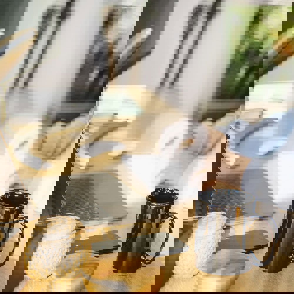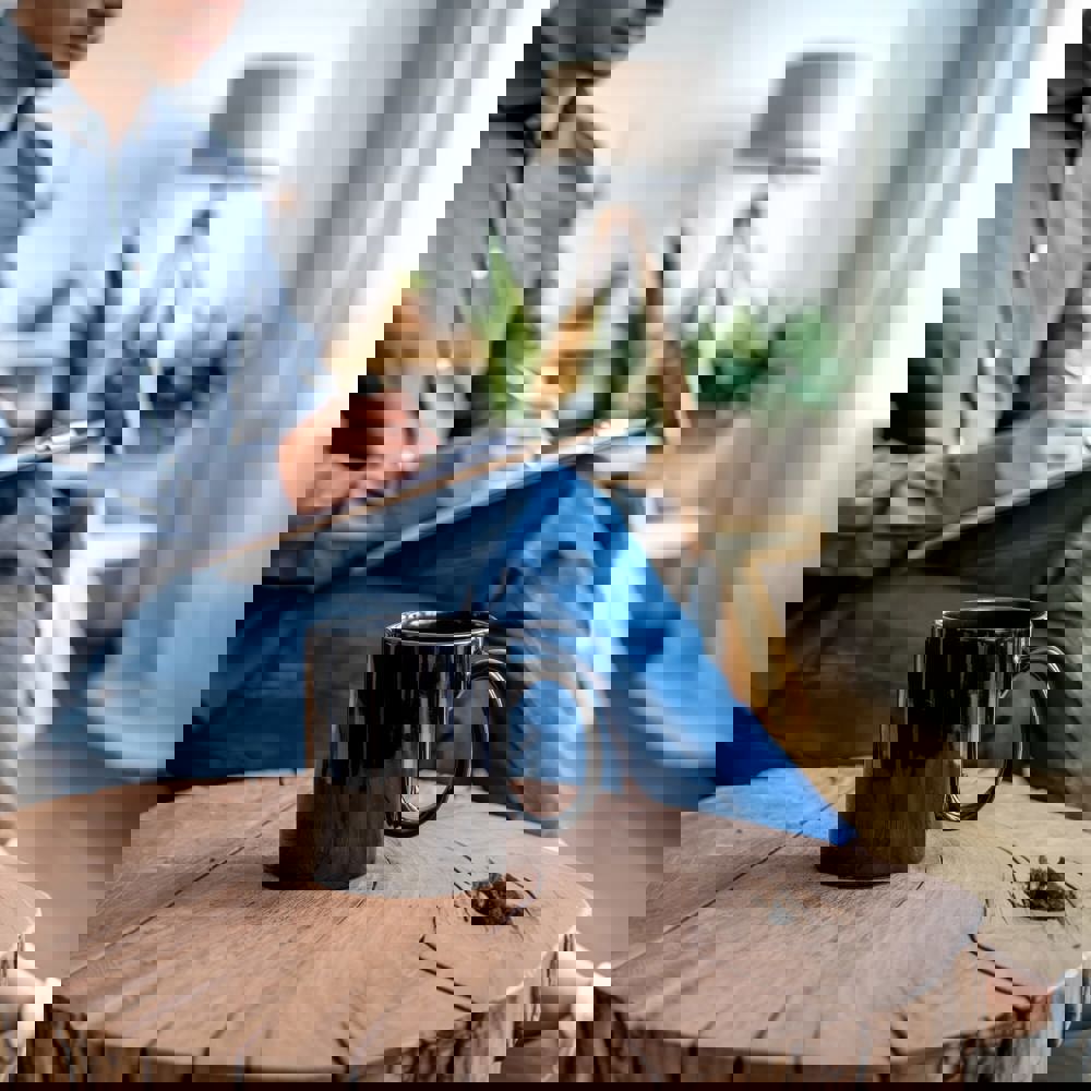 Coloured stoneware mug. Large printing area.
