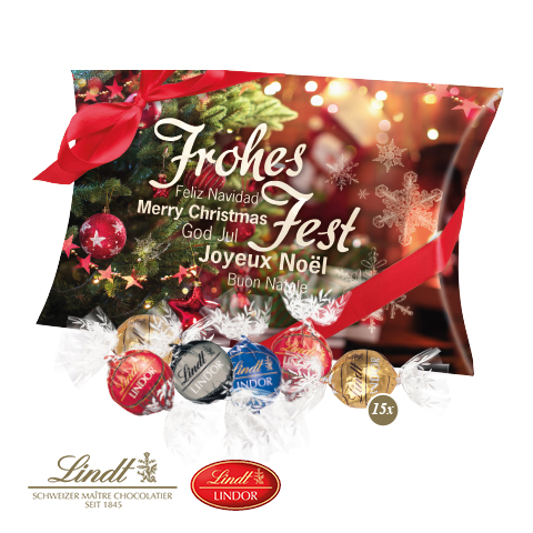 Ein außergewöhnliches und besonderes Geschenk! Zum Jubiläum oder zum Geburtstag, als exklusives Feiertagsgeschenk oder als außergewöhnliches Give-Away: Die feinen Lindor Pralinés kommen garantiert immer und überall gut an!. Produktdetails: Individuelle Kissenverpackung aus hochwertiger Kartonage mit süßer Füllung. Nachhaltigkeit: Wir verwenden FSC®-zertifizierten Karton aus nachhaltiger Forstwirtschaft und anderen kontrollierten Quellen. Für jede Bestellung mit uns wird ein Baum über Grow my Tree gepflanzt.
