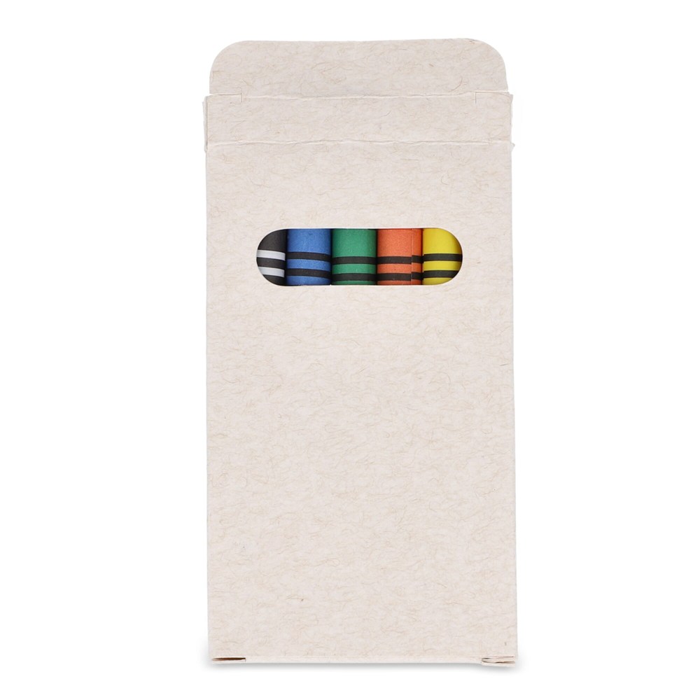 6 crayons in recycled milkcarton box