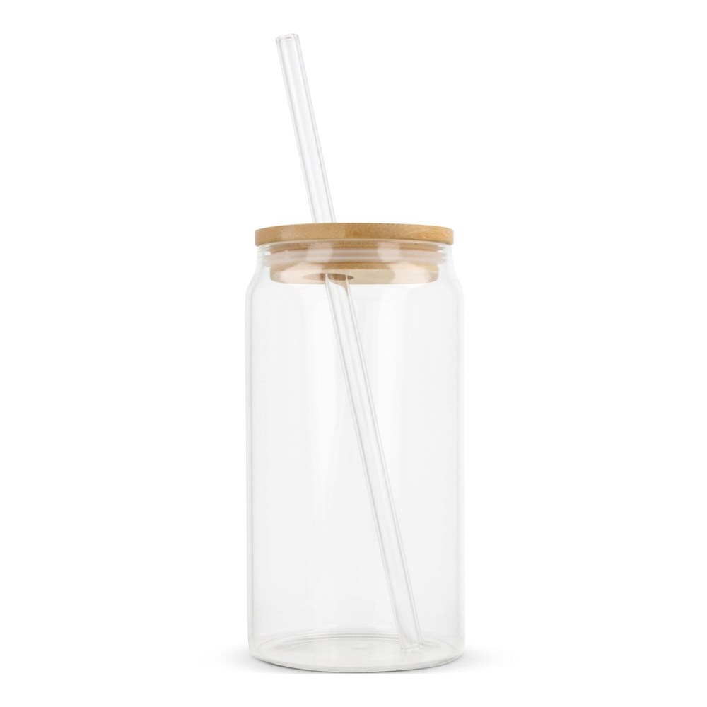 Glas mit Bambusdeckel & Strohhalm 450ml