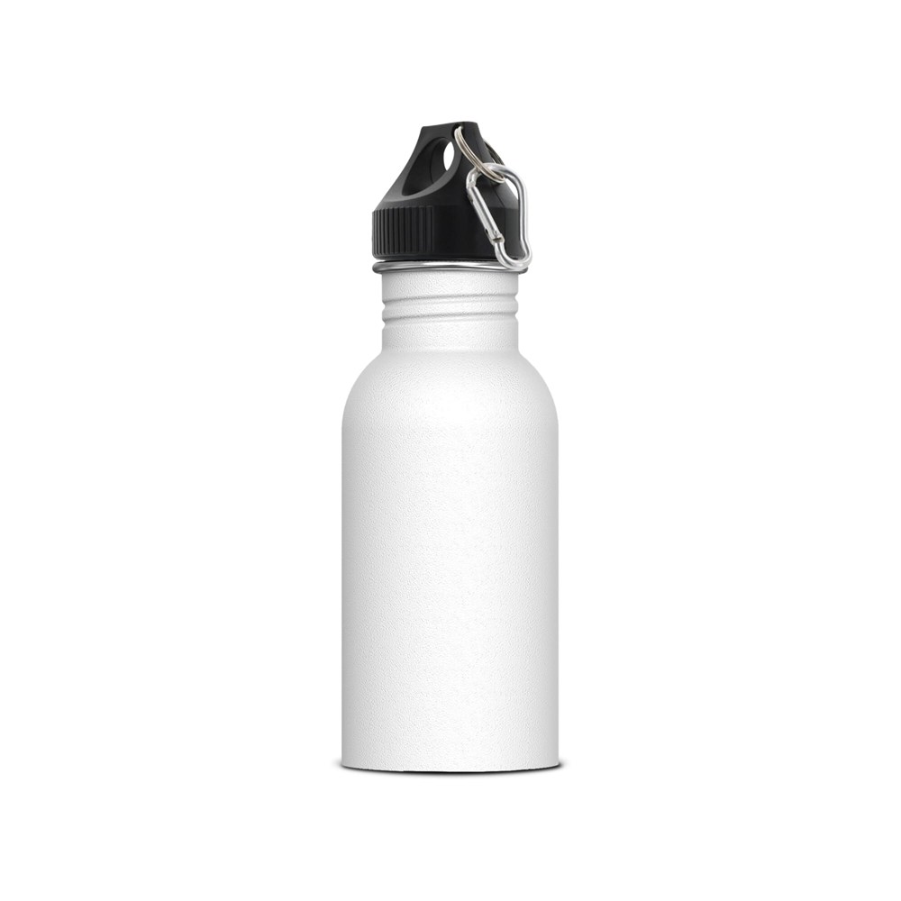 Einwandige Trinkflasche aus Edelstahl. Die 100% auslaufsichere Trinkflasche wird in einer Geschenkverpackung geliefert. Die Pulverbeschichtung der Aussenwände verleiht der Flasche ein elegantes Aussehen. Geeignet für kalte, kohlensäurefreie Getränke.