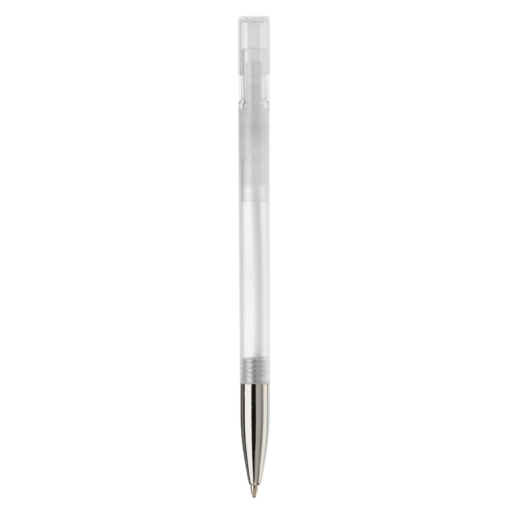 Toppoint design balpen, geproduceerd in Duitsland. Deze pen bevat een blauwschrijvende X20 vulling voor 2,5km schrijfplezier. Transparante pen met een metalen tip.