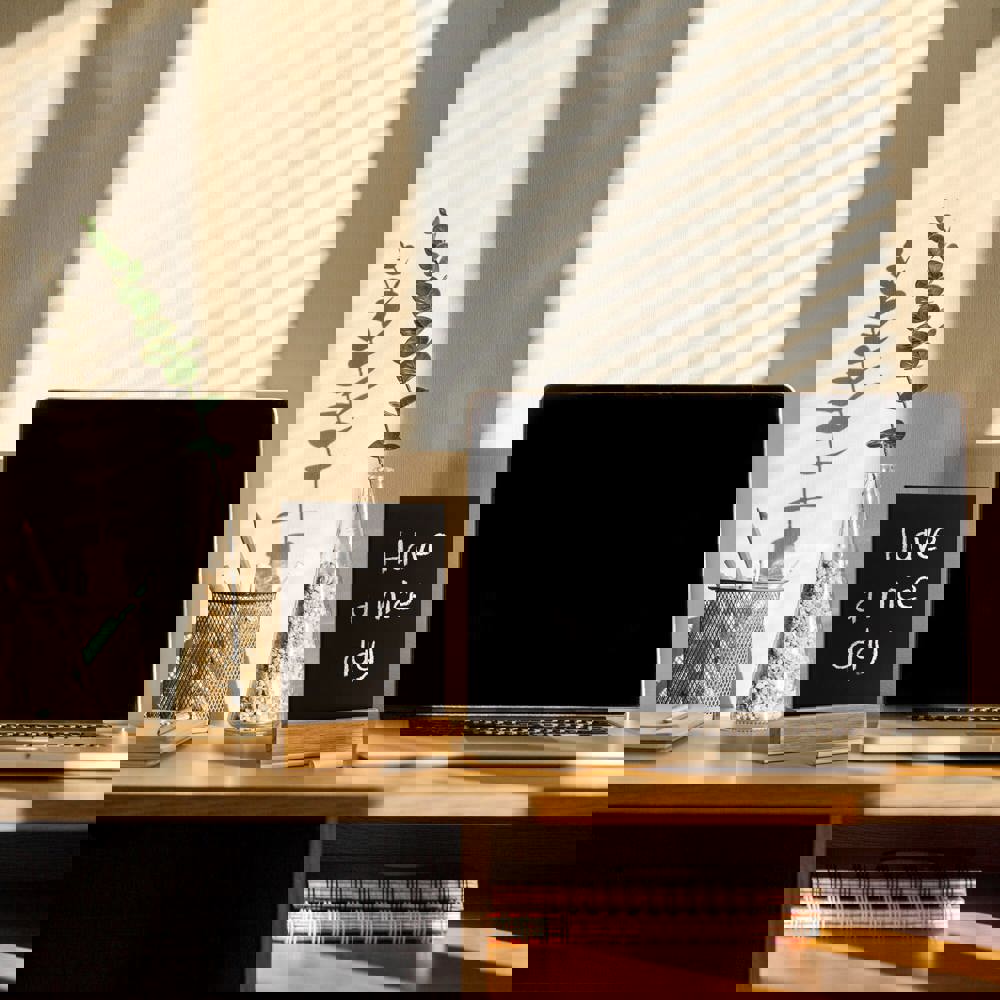 Krijtbord in houten standaard