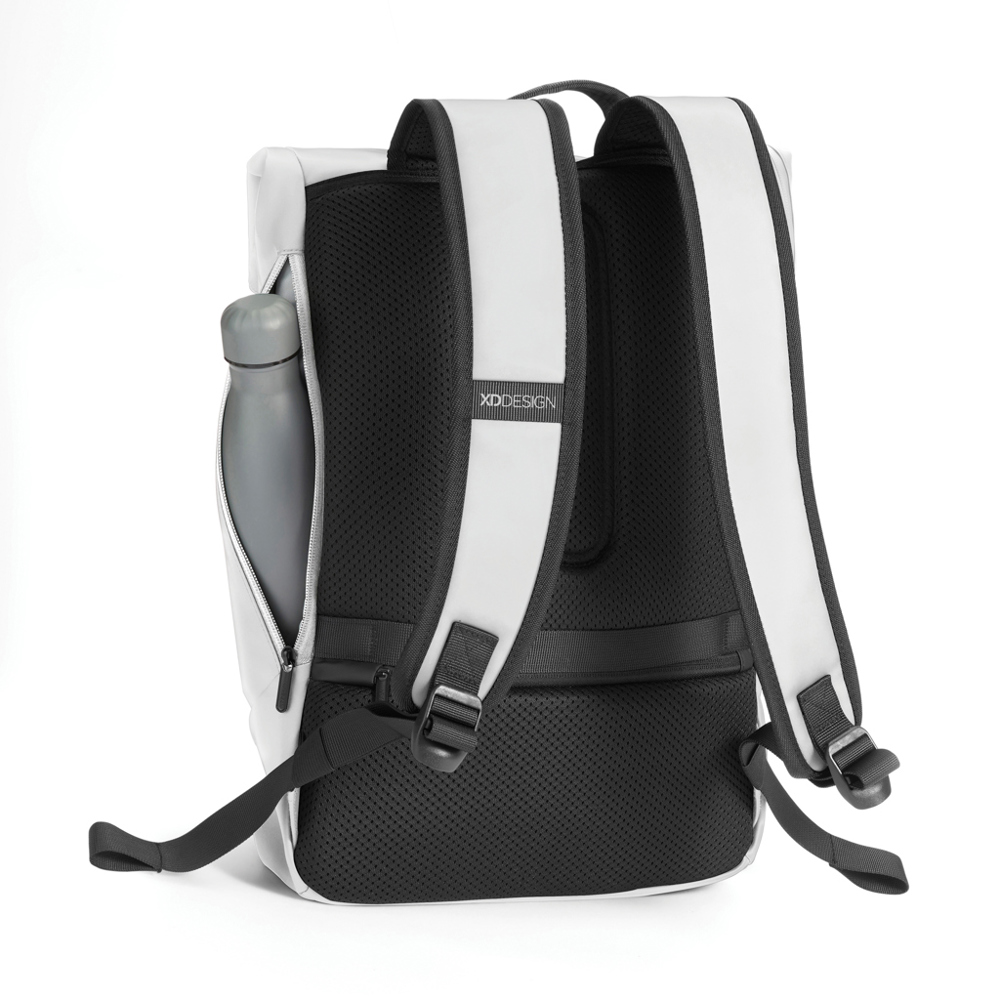 Ervaar veelzijdig, all-weather design en verbeterde beveiliging met deze Urban rugzak. Het unieke L-vormige brede opening van het hoofdvak, compleet met een uitbreidbaar gedeelte en voldoende ruimte voor een 16-inch laptop, biedt moeiteloze toegang tot je benodigdheden. Het anti-diefstal ontwerp, gecombineerd met een zelfsluitende metalen ritstrekker, zorgt ervoor dat je spullen veilig blijven. De toevoeging van een achterzak en een speciale fleshouder biedt gemak voor je dagelijkse avonturen, waardoor het de ideale metgezel is voor de stedelijke ontdekkingsreiziger. Deze rugzak is niet alleen waterbestendig, maar ook duurzaam en stijlvol. Gemaakt met Aware™ traceerbaar gerecycled polyester en afgewerkt met een zachte PU-coating, perfect voor elke gelegenheid. 17% gerecycled materiaal. Geregistreerd ontwerp®