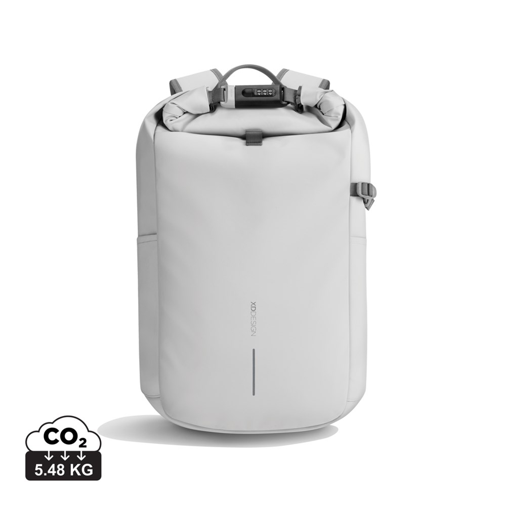 De nieuwe Urban anti-diefstal rugzak is de ideale reisgenoot, die veiligheid en gemak garandeert. Het hoofdvak wordt afgesloten door het op te rollen en vast te zetten met het versterkte combinatieslot, wat volledige afsluiting biedt en tevens gebruikt kan worden om de tas aan een vast object te vergrendelen. Verborgen vakken aan de achterkant. De tas is uitgerust met een zijvak voor een waterfles. Binnenin zorgen gewatteerde compartimenten voor een 16” laptop en gaasvakken bieden organisatie voor je benodigdheden. Gemaakt van Aware™ traceerbaar gerecycled polyester en afgewerkt met een zachte waterbestendige PU-coating. 11% gerecycled materiaal. Geregistreerd ontwerp®
