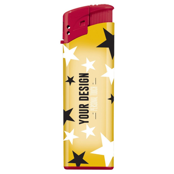 Elektronisches Feuerzeug für eine individuelle Werbeanbringung mittels Label in Full Colour. Kindersicherung. Ab 5.000 Stück lieferbar.