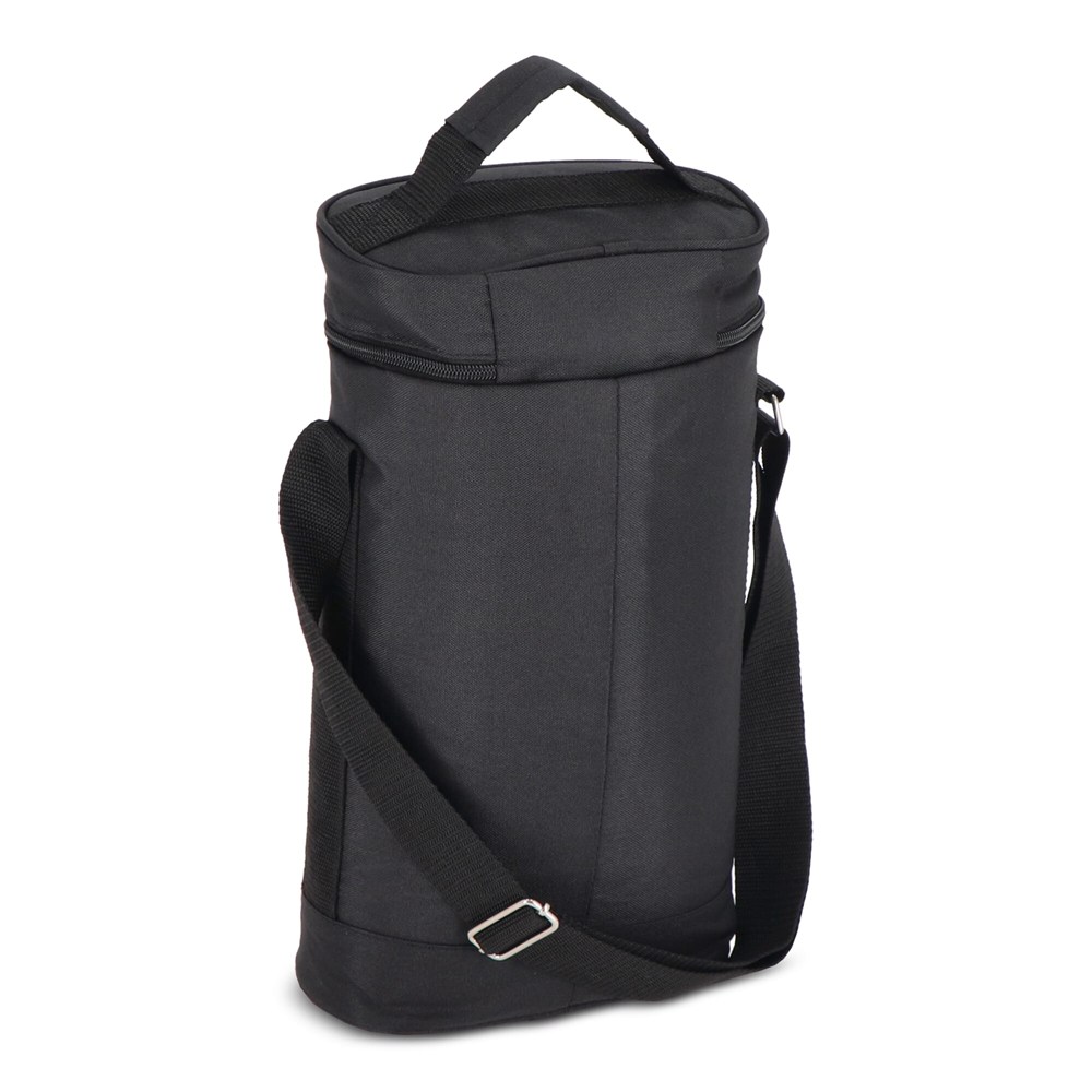 Praktische und sportliche Kühltasche aus grünem rPET-Material. Stilvolle Details in Beige und Schwarz. Ein Modell, das z. B. für zwei Weinflaschen oder 1,5-Liter-PET-Flaschen verwendet werden kann. Sie hat sowohl einen Griff als auch einen verstellbaren Schultergurt.