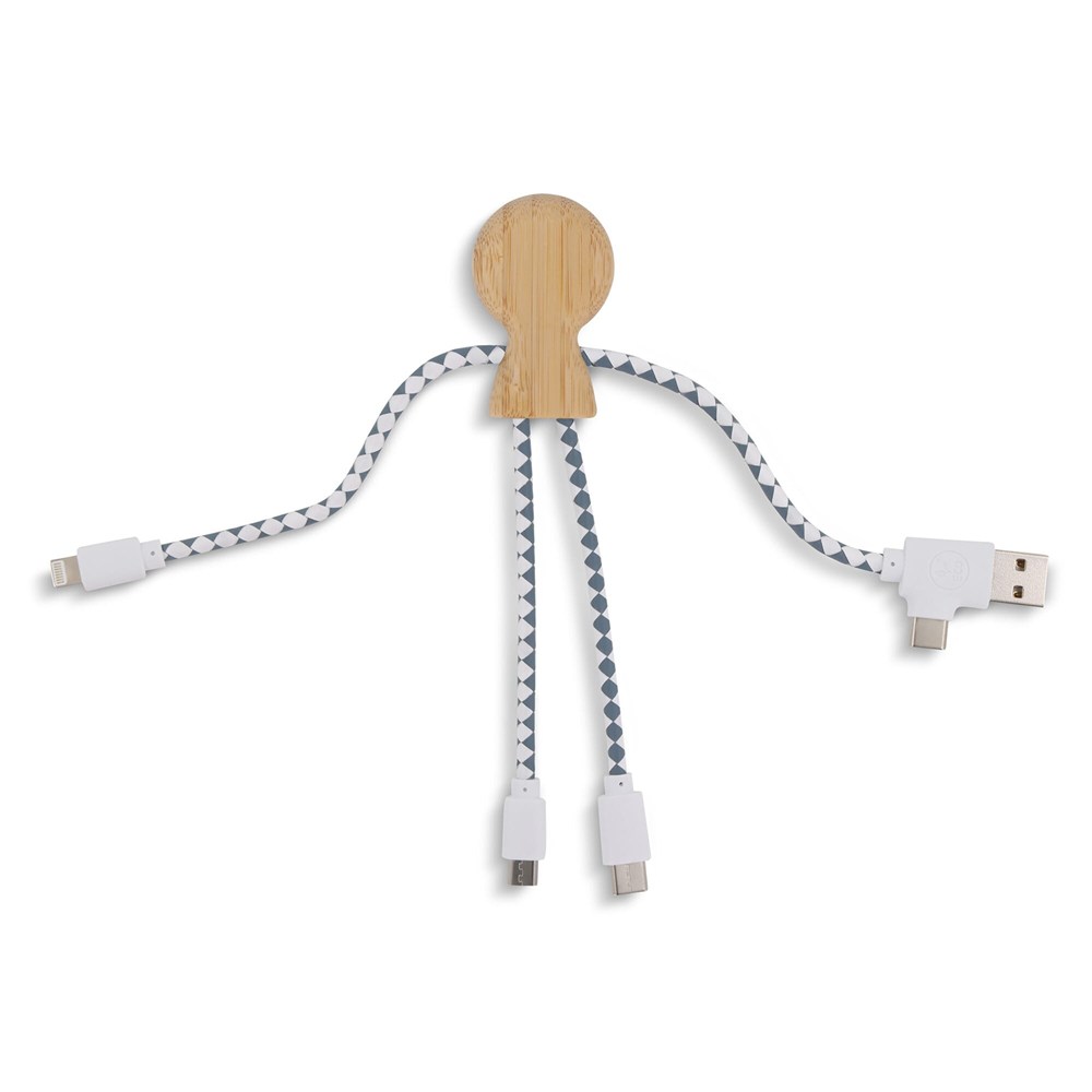Mr. Bio Bamboo ist unser neuestes Multiladekabel mit einem dualen USB- und USB-C-Eingangsanschluss und drei Anschlüssen zum Laden Ihrer Geräte. Es ist aus Bambus und DuPont Tyvek-Kabeln hergestellt. Es wird in einem eleganten, nachhaltigen FSC-Papierumschlag verpackt.