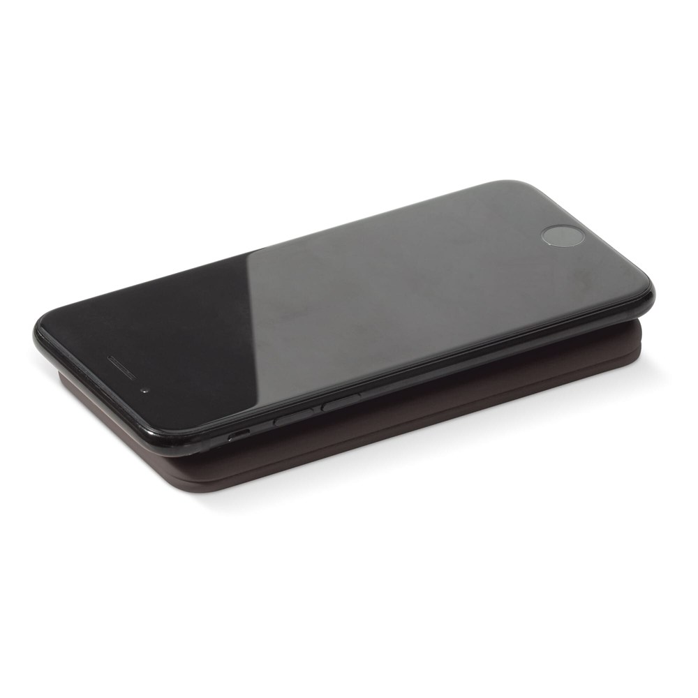 Flache kabellose Powerbank der Serie Blade mit einer gummierten Oberfläche. Die Saugnäpfe sorgen dafür, dass das Smartphone immer verbunden bleibt, auch wenn es mal in einer Tasche ist. Die Powerbank verfügt über USB-Anschlüsse mit denen auch Smartphones ohne Wireless-Charging-Funktion geladen werden können. Einzeln verpackt in einer Geschenkbox.